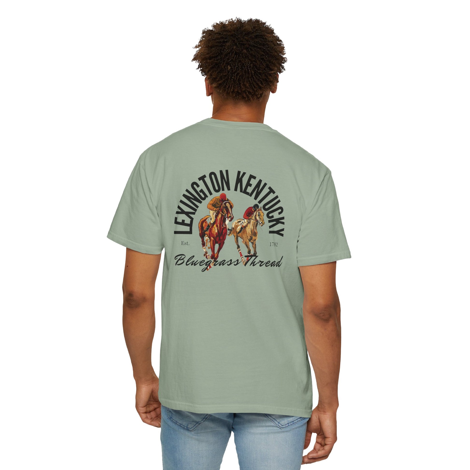 Experience comfort and style with our premium unisex garment-dyed t-shirt. This tee is perfect for casual outings, lounging at home, or showing off your love for Kentucky culture. Its relaxed fit and soft fabric make it suitable for all day wear, while the eye-catching design adds a touch of artistry. Ideal for horse enthusiasts and those who appreciate unique apparel, this t-shirt is an excellent gift for birthdays, holidays, or just because! Celebrate your individuality and express yourself in vibrant hues, as this t-shirt is available in 58 stunning colors, making it a versatile addition to any wardrobe.